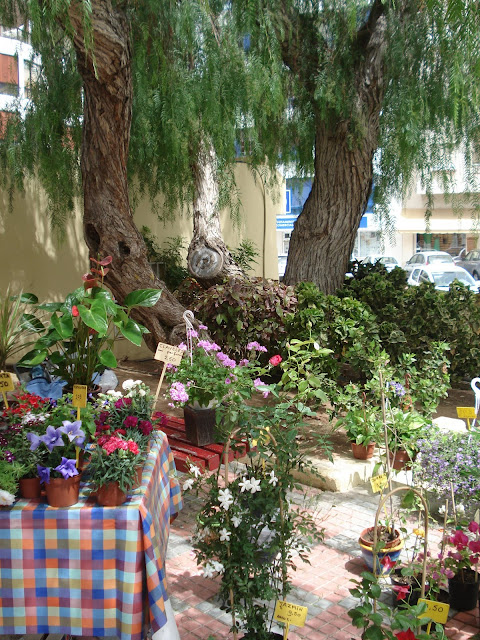 I rested in this little oasis at market yesterday. It's hot here at the moment. We are in the middle of what's known as a 'calima' . The air is full of dust blown over from the Sahara and it increases the temperature. Not particularly pleasant for the lungs either but it will blow over in a day or so. I think I'll stay shuttered up in my little house 'til then.
